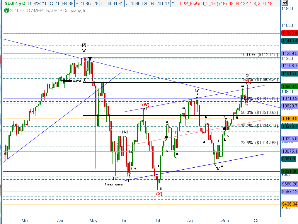 - a possible ending diagonal pattern in the Dow and S&P 500.