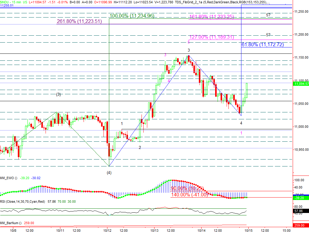 It seems that whenever Fed Chairman Bernanke is scheduled to speak, the market stalls until he does. Perhaps the best fundamental explanation to account for the very narrow trading range this week.  At 8:15 this morning Ben is scheduled to speak at a Fed conference in Boston and all are watching to see if he will shed any light on the likelihood of QE2.   Our wave counts all seem to indicate we are on the cusp of a turning point that can have a dramatic impact on the markets.  We also have a full slate of other economic reports due out this morning, both before and after the markets open.  Additionally, many index derivatives settle based on the opening print this morning so money may be put to work pre-market either to try and shape the open or to hedge exposure for any of those positions that were not closed yesterday.
