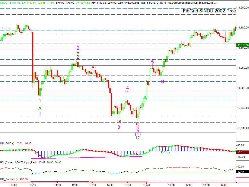 This afternoon prices rose awfully close to Monday’s high. The magenta count will allow a downturn from these levels. But once above it would point to the green count that said we only had a correction.