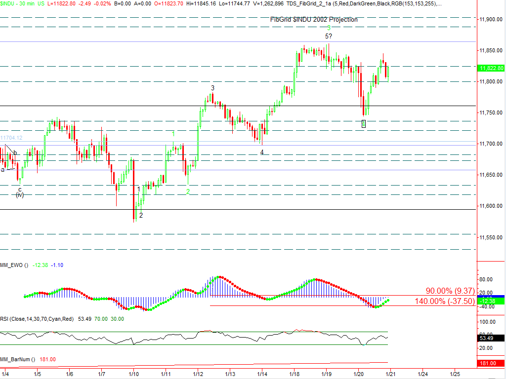 We stand by our assertion that market action right now looks toppy, but again we caution that toppy does not mean topped.  As we point out in today’s briefings, as we have for the past several days, there remains a significant potential for a new high in the DJIA.  That remains true even if it’s possible that other indices have put in their highs.  The thing that remains constant is our focus on the need for confirmation.  Elliott waves give clear confirmation levels and levels where we know that we’re wrong.  We lay these out in our videos today, as usual, and recommend paying attention to them, not just our headlines.