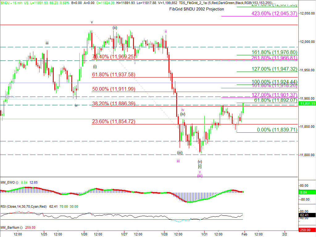 The Euro has retraced all of its sharp decline and put in a new high, calling into question what the short-term count might be.  Even though the similar decline in equities hasn’t been erased, we remain cautious.  At the moment, the count in the DJIA favors a continued decline and we will stick with that view until proven wrong.  However, the situation in the Euro points out that we can be proven wrong.  Therefore it’s particularly important to pay attention to confirmation levels and non-confirmation levels that we look at each day in our briefings.