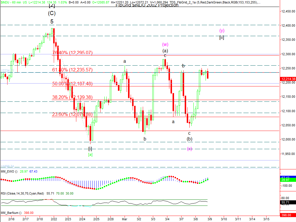 It is reasonable to have a long, drawn out second wave before a drop accelerates.  Nevertheless, if this is a complex second wave, it’s structure isn’t clear and that should serve as a warning sign that the turn down may not be immediately forthcoming.  To be clear, we haven’t yet seen anything that would cause us to dismiss the likelihood of another push down.  However, the longer we wait the more we have to discount the probability, especially when the wave count of the second wave correction isn’t clear.