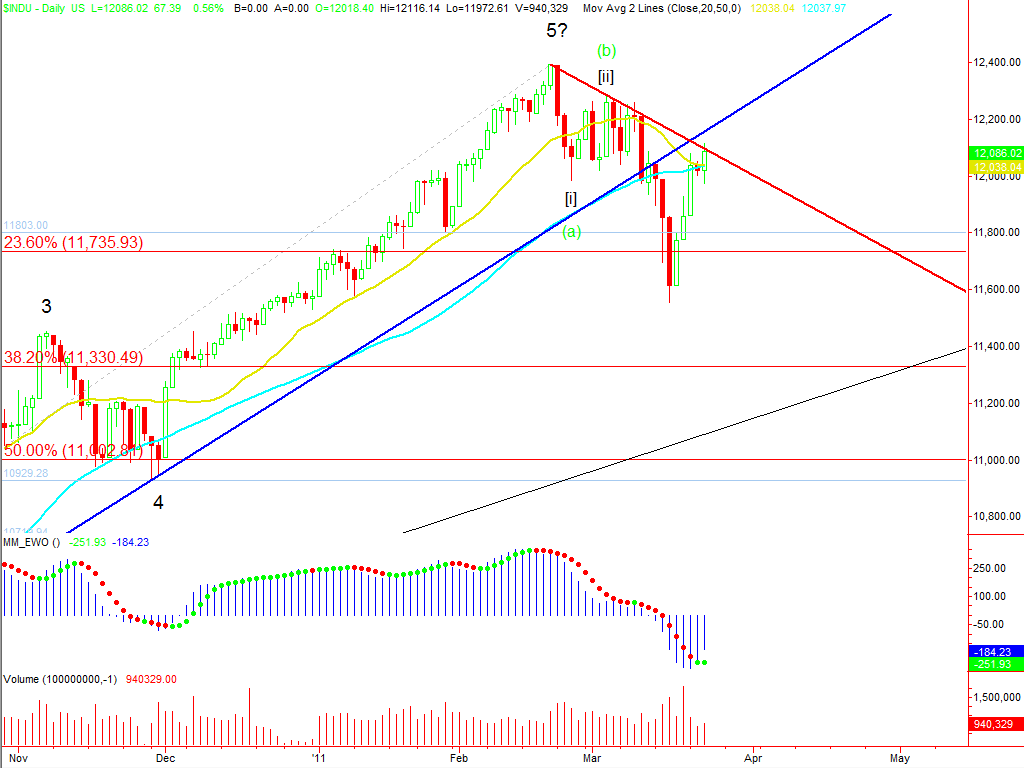 The bulls are clearly trying to take back control of the U. S. equity markets. We have tried to allow for the move down from February 18th highs to be interpreted as a correction as well as a turn downward and continued bullish activity requires us to give additional weight to the scenario. Nevertheless, that additional weight is not enough to rule out the bearish case. As we point out in today’s briefings, there is contradictory evidence. That makes it important to pay attention to our key levels and make plans for what we want to do once things sort themselves out. So today we focus on refining the things we want to look at as we watch for additional evidence.