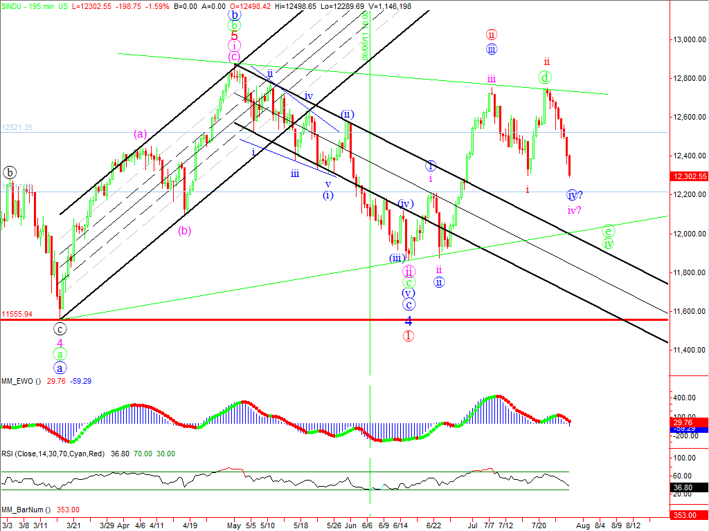 For those unfamiliar with the arcane elements of congressional procedures, the Whip is a member of congress responsible for keeping all of his party’s members in line and voting for a particular bill. But when the Whip counts up votes and finds insufficient votes for a measure the party needs to regroup as we saw yesterday with the delay on voting for raising the U. S. debt ceiling. That, in turn, gave us our own version of the House Whip, where the DJIA snapped down nearly 200 points. We have adjusted our scenarios following the big move and have the latest in our videos.