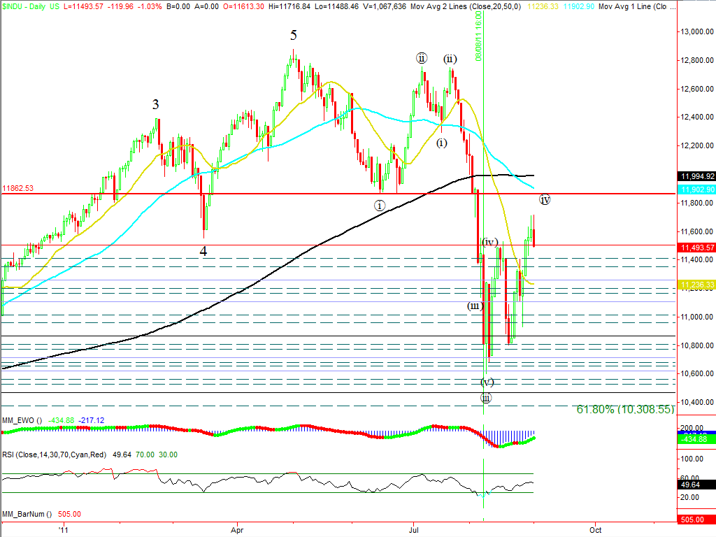 With David’s power restored we’re back to our regular format. The prospects for a weak open following a sell-off in Asia and Europe and then weak BLS numbers domestically increases the odds that a wave iv-(circle) high is in.