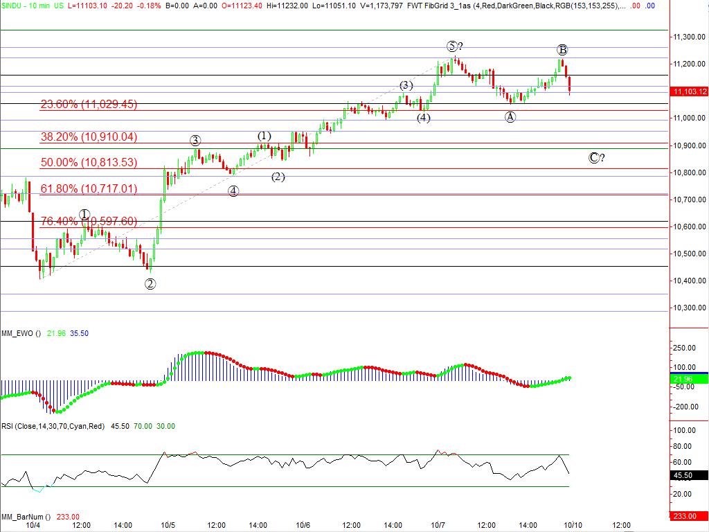 Each day Elliott Squawk will update the outlook for the following markets:- The Dow Jones Industrial Average