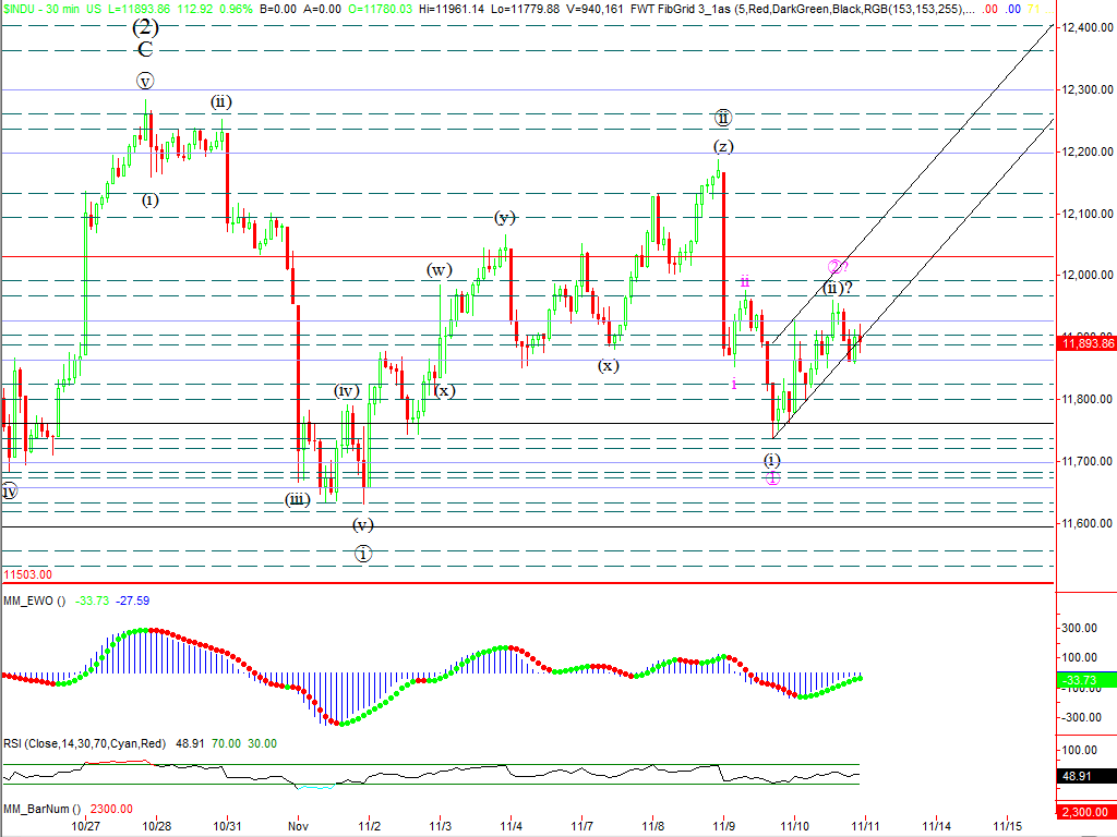 As we enter trade for the eleventh day of the eleventh month of the eleventh year of this millennium, we note that bond markets are closed in observance of Veteran’s day. Other U. S. exchanges are open and most likely have their sights set over to Europe. We have no insight on the news today, only on the wave counts, and that is presented in our videos below.