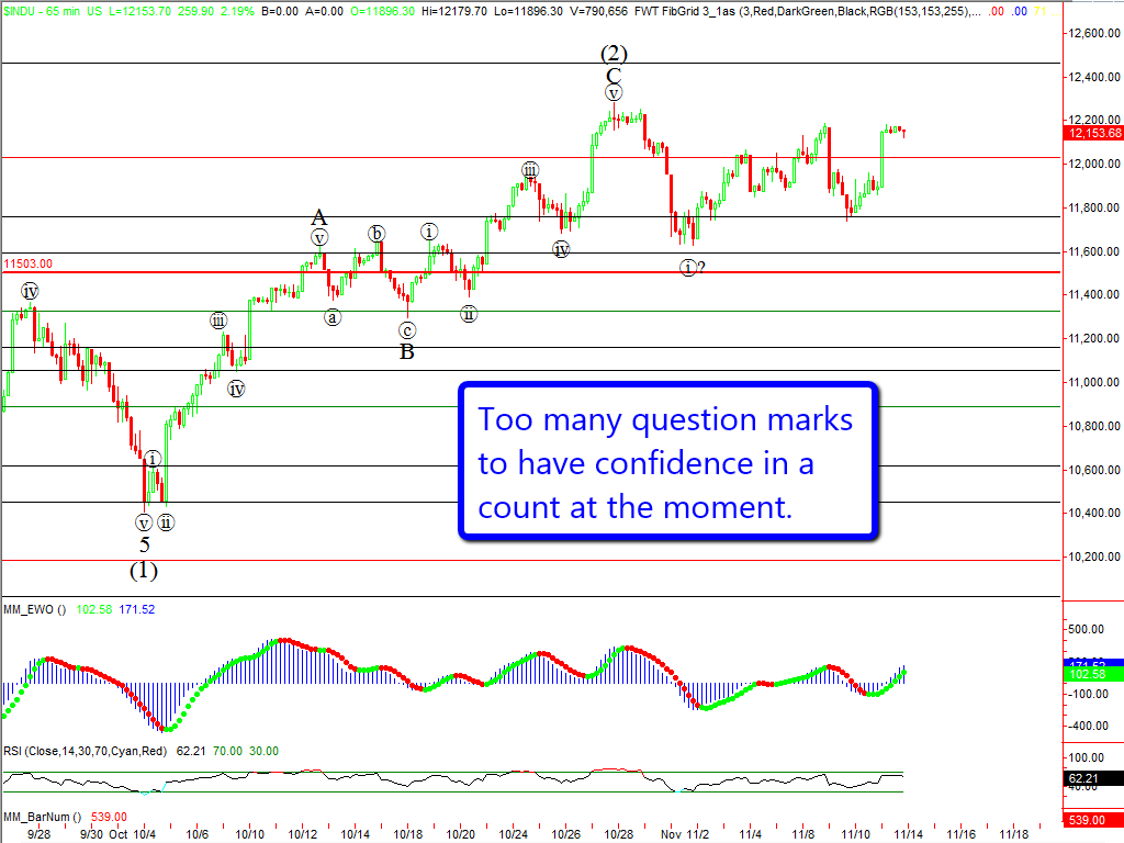 One of the reasons we continue to be intently focused on the news, despite our reliance on technical analysis, is that the news events often end up initiating the movement of markets.   Then we have to rely on our technical analysis to determine which of those movements establish a change in trend.  We cannot conclusively call an end to the uptrend which began on October 4th, but everything continues to suggest that we will turn down before overtaking August highs.  Each additional movement in the market adds more information for us to analyze and more clues about direction.  So we will watch the news for indications of when we might see additional movement that could ultimately reveal our anticipated change in trend.