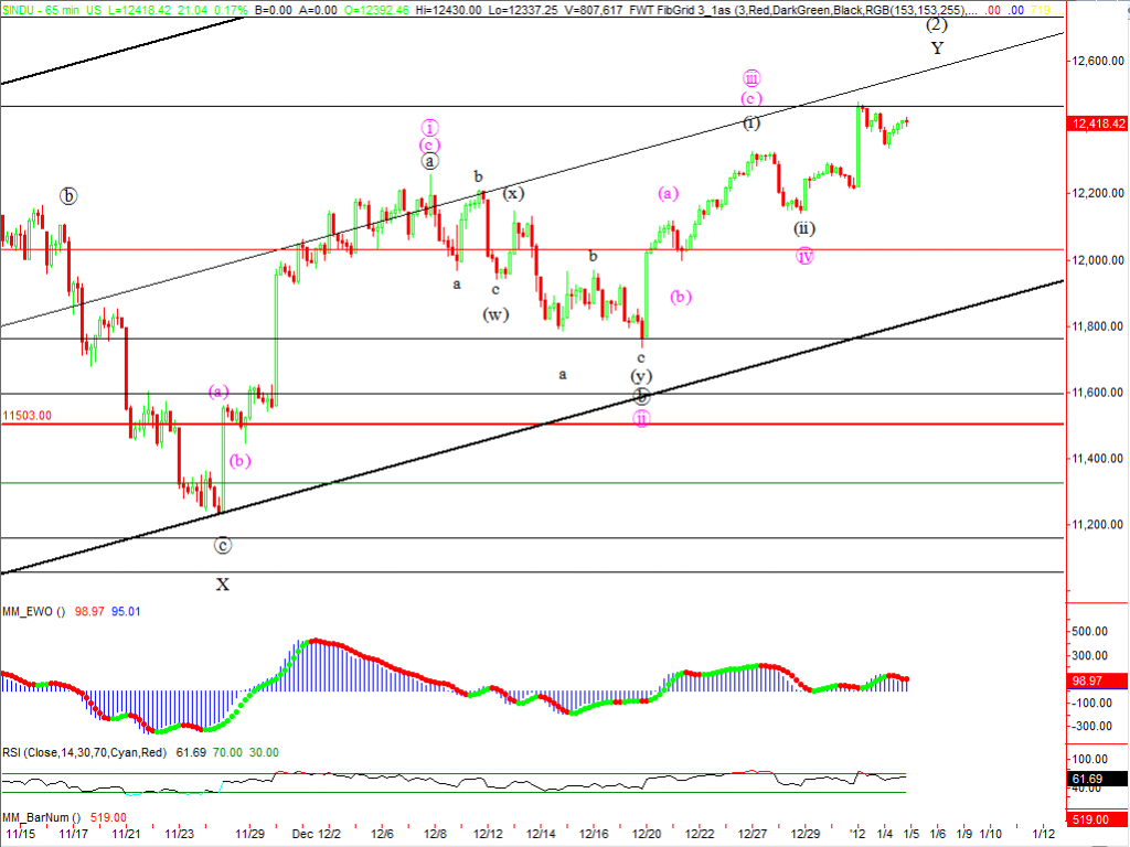 If it is difficult waiting for patterns to complete in U. S. equities, perhaps patience should be on your list of new year’s resolutions. This drawn out correction appears able to test to resolve of even the most stoic soul. Nevertheless, it doesn’t do much good to jump the gun, so we will wait for more compelling evidence. In both the DJIA and YM we have seen possible signs of a top, but many other possibilities need to be ruled out. So we will continue to track the action and continue to wait until it is decisive.