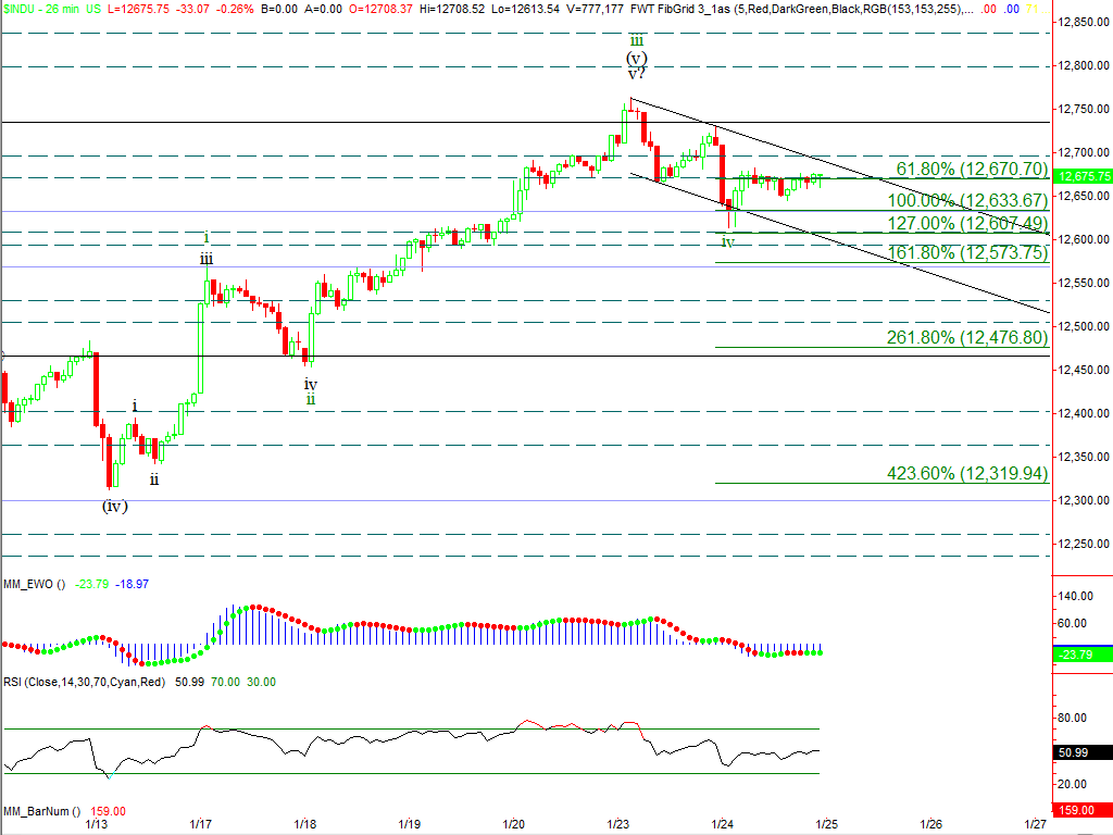 A dramatic turn down in overnight futures is enough to spark the imagination of would-be equity bears just waiting for a reason to emerge from hibernation. However, as we outlined in our DJIA video, the market continues to keep its options open, in a move that demonstrates unwillingness to commit to either up or down in the short-term. The YM video shows how the current move down could also be a part of a correction allowing for new highs. Therefore we’re going to watch the markets closely after the open to see if we get any of the indications we’ve cited to demonstrate a commitment one way or the other.