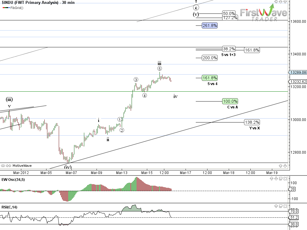 Each day Elliott Squawk will update the outlook for the following markets:- The Dow Jones Industrial Average