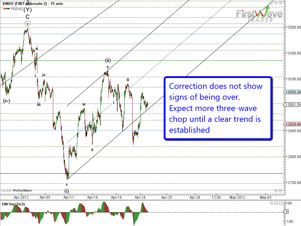 Markets seem to have no memory from day to day. One day mood is good and stocks are being bought driving markets sharply up and the next day they sell of just as hard. In our DJIA briefing today we discuss this situation and the ensuing frustration that might tempt us to give up. To regain our sanity, we dig into how the structure of waves tells us that this whippy action is occurring so we can avoid it and how we’ll know when it is safe to look for trends again.