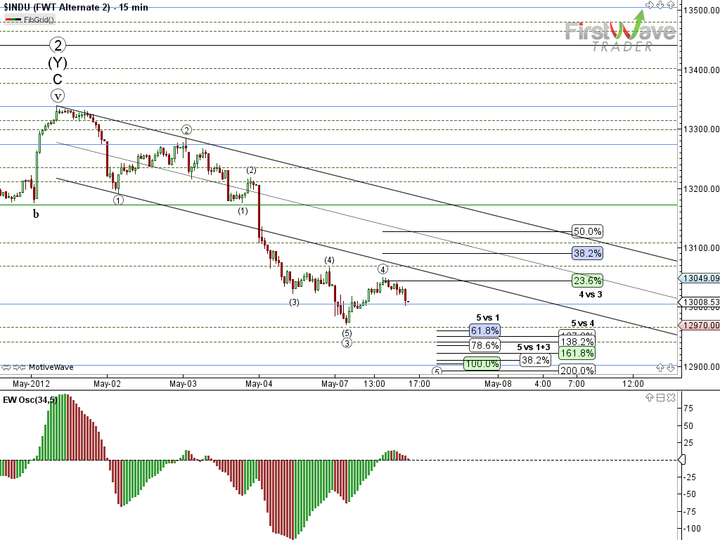 U. S. Equities find themselves near support. Our bearish count should see a new low before any bounce, but the most likely scenarios call for a bounces from not too far below current levels (see DJIA video for more details). All of our most likely counts, however, expect the bounce to be in three wave and should eventually give way to selling down to lower levels.