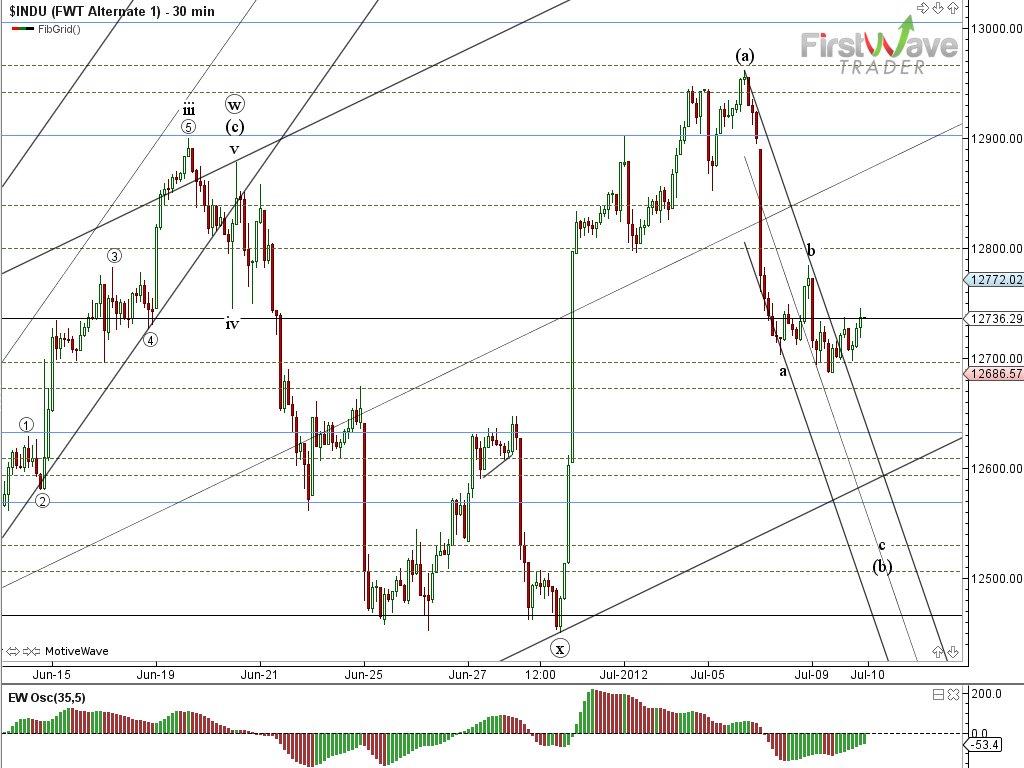 We continue to view the move up from June 4th as likely corrective. The most important question at the moment is whether that correction is complete or not. We have suggested since last week that it might be done but that other patterns exist which could have prices heading yet higher in a correction. Today’s updates contain the latest, but it still remains unclear.