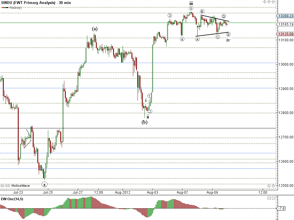 U. S. Equities remain range-bound for the week and nothing will happen until the range breaks. It remains possible that it breaks to the downside, but the longer it persists, the greater the potential it resolves up. Even so, there’s a good chance that an upside resolution would just be a temporary pop before a reversal. This is especially true if it continues to count out well as a fourth wave triangle.