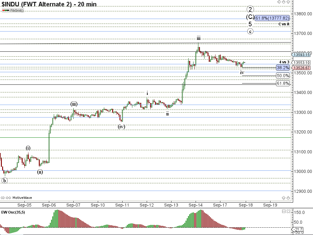 Within that overall we three-wave structure, we expect the upward moves to be in five waves to show they are in the direction of this upward, corrective trend. And as we focus on the rise since September 4th it appears that at least one more small push up is needed to complete a five-wave move. The pattern would look more complete if we get that last push.